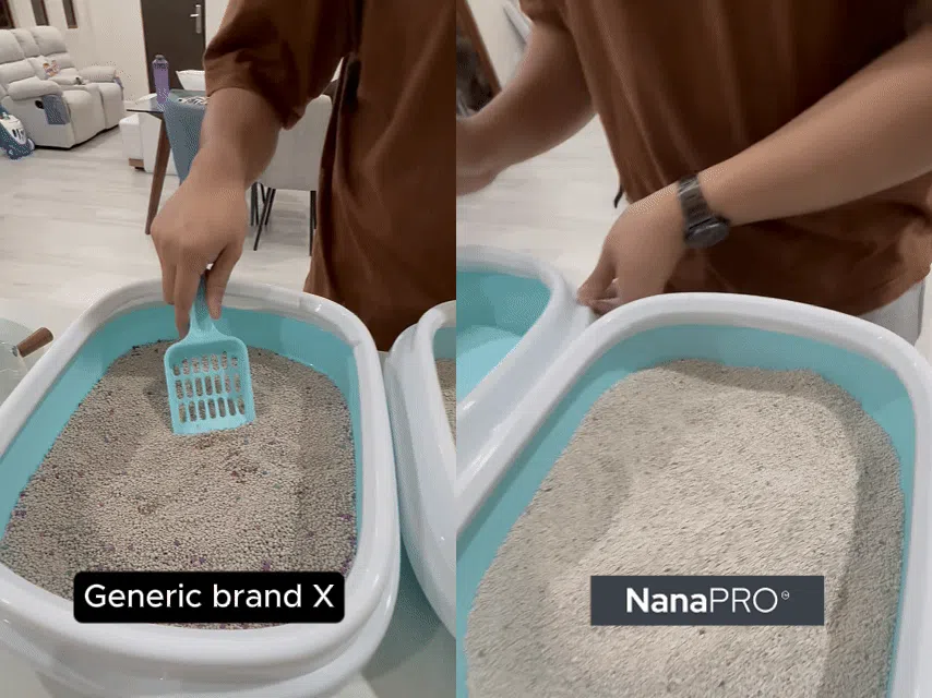 Generic litter consumes more vs Efficient clumping for NanaPro